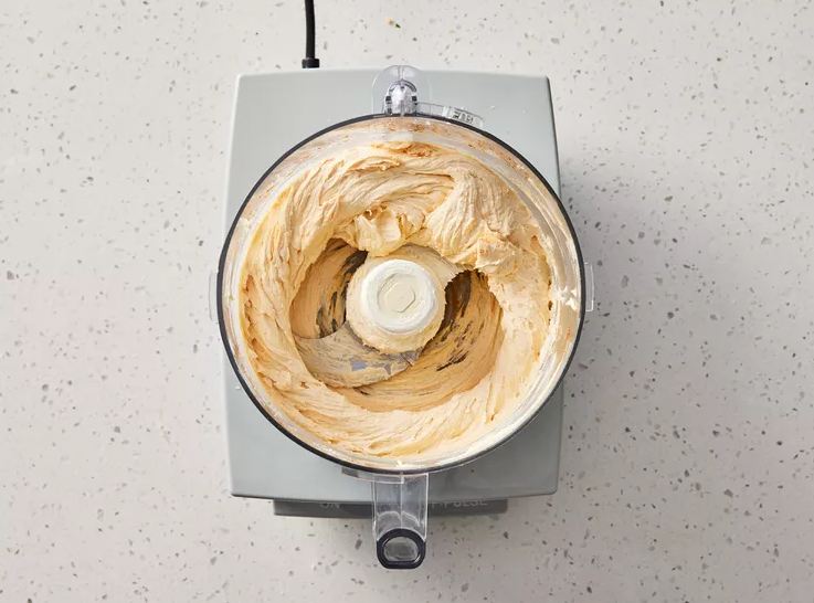 Përziej djathërat. Në një procesor ushqimi bashko djathin kremoz, salcën e specit, paprikën dhe hudhrën. Përpunoji derisa masa të bëhet homogjene.