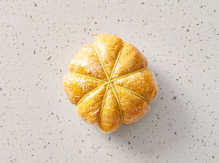 Krijo formën e kungullit. Vendos 4 shirita të gjerë gome përreth topthit, në mënyrë të barabartë, që të formohen vijat karakteristike të kungullit. Nëse gomat janë shumë të holla, mbështilli dyfish.