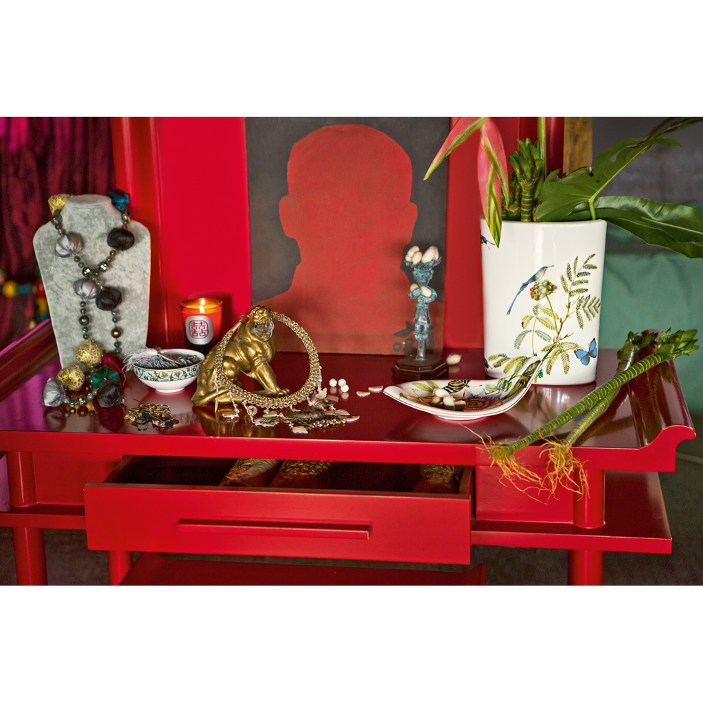 Me dekorimin e Amazonia, Villeroy & Boch përmirëson koleksionin popullor Modern Grace me motive ekzotike, të ndritshme dhe shumëngjyrëshe të pyjeve të shiut – një tërheqje e vërtetë e syve për tryezën. Villeroy & Boch ka qenë sinonim i krijimeve prej porcelani të cilësisë më të lartë që nga viti 1748. Kjo vazo e ngushtë, e zbukuruar me kolibra, barëra ekzotikë dhe brumbuj, është e përkryer për të ekspozuar orkide dhe lule vendase. Përmirësoni hapësirën tuaj të jetesës me këtë dekorim të bukur dhe elegant.