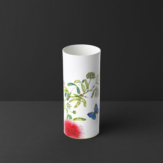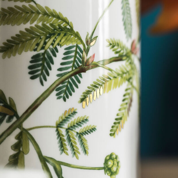 Orkide madhështore, kolibra magjepsës dhe flutura shumëngjyrëshe direkt nga një pyll tropikal tropikal – koleksioni i enëve dhe dhuratave të Amazonia ju lejon të ndiqni gjurmët e natyralistit Alexander von Humboldt. Çdo element është një tërheqës ekskluziv i syve i bërë nga porcelani i hollë Premium Bone që ju çon në një udhëtim zbulimi drejt bukurisë së vërtetë të natyrës. Kjo vazo ju nxit fjalë për fjalë të bashkoni lule të vërteta dhe dekorative – mund të akomodojë edhe lule me kërcell të gjatë falë lartësisë dhe qëndrueshmërisë së saj. Shkoni në ekspeditën tuaj të stilit me një dekor me lule.