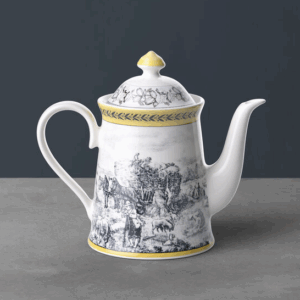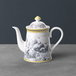 Kjo enë kafeje është pjesë e modelit të stilit country të Villeroy & Boch, Audun Ferme. Me këtë model Villeroy & Boch lidh në mënyrë të shkëlqyer të kaluarën, të tashmen dhe të ardhmen e frymëzuar nga dizajnet e gdhendura në bakër nga fillimi i shekullit të kaluar. Skenat baritore bardh e zi janë freskuar nga një kufi me theks të verdhë kremoz dhe zbukurime të tjera grafike. 4 modele së bashku japin një deklaratë të fortë të modës për të veshur tryezën tuaj ose për të varur pjata dekorative në mur. 4 vargjet janë: Femme, Promenade, Fleur dhe Chase. Audun është një fshat i vogël në atë që tani është Lorraine Provence e Francës dhe ishte qeramika e parë e ngritur nga anëtarët e familjes Boch.