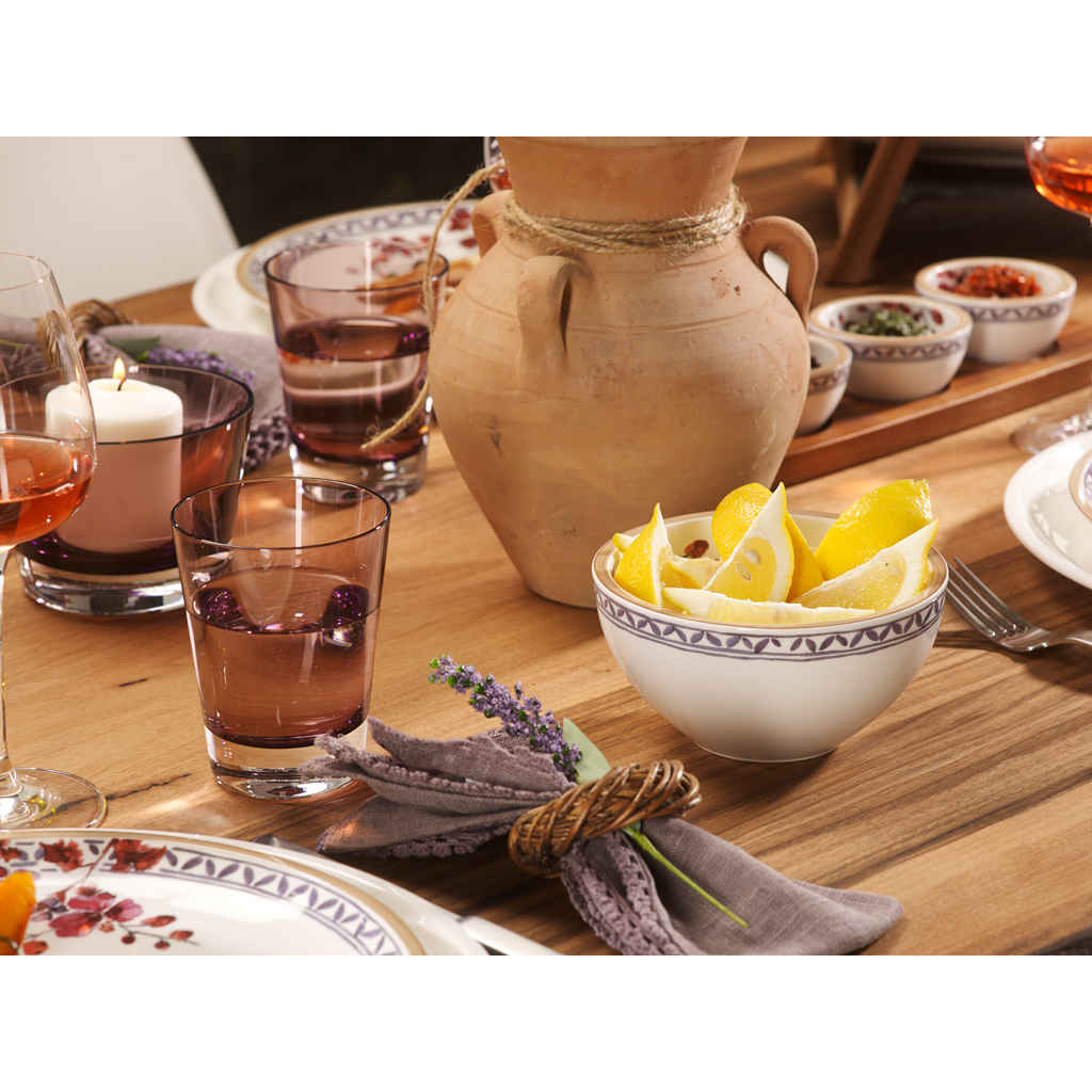Koleksioni klasik i bukur Artesano Provençal Lavender nga Villeroy & Boch nxjerr hijeshinë franceze jugore falë gjuhës së tij tradicionale të dizajnit dhe modelit tërheqës të trëndafilave të egër dhe livandës provansale. Cilësi nga Villeroy & Boch që nga viti 1748. Tasi me formë të bukur i bërë nga porcelani i imët është i përshtatshëm në mënyrë ideale për të shërbyer dips, ëmbëlsira të ëmbla ose fruta. Frymëzohuni nga ngjyrat mesdhetare të Provence me diell.