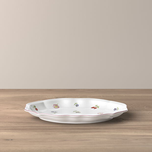Format e lakuara klasike dhe dekorimet lozonjare me lule i shtojnë një bukuri unike të përjetshme koleksionit popullor Petite Fleur. Paraqisni kënaqësitë tuaja të kuzhinës në një mënyrë veçanërisht tërheqëse në këtë pjatë turshi me lule nga Petite Fleur. Përjetoni koleksionin e enëve të tavolinës me një dekor simpatik me lule.