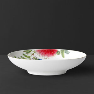 Me dekorimin e Amazonia, Villeroy & Boch përmirëson koleksionin popullor Modern Grace me motive ekzotike, të ndritshme dhe shumëngjyrëshe të pyjeve të shiut – një tërheqje e vërtetë e syve për tryezën. Tasja ovale e dizajnuar me hijeshi është sa bukur aq edhe e përjetshme. Shërbejini pjata të nxehta dhe ëmbëlsira delikate në këtë tas tërheqës të bërë nga porcelani i imët.