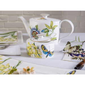Me dekorimin e Amazonia, Villeroy & Boch përmirëson koleksionin popullor Modern Grace me motive ekzotike, të ndritshme dhe shumëngjyrëshe të pyjeve të shiut – një tërheqje e vërtetë e syve për tryezën. Të gjithë sytë do të jenë te ky çajnik i dekoruar fillimisht kur të zërë qendër në tryezën tuaj në çajin e pasdites. Shtoni prekjen perfekte të kompletit tuaj të çajit me këtë çajnik të bukur dhe praktik nga Villeroy & Boch.