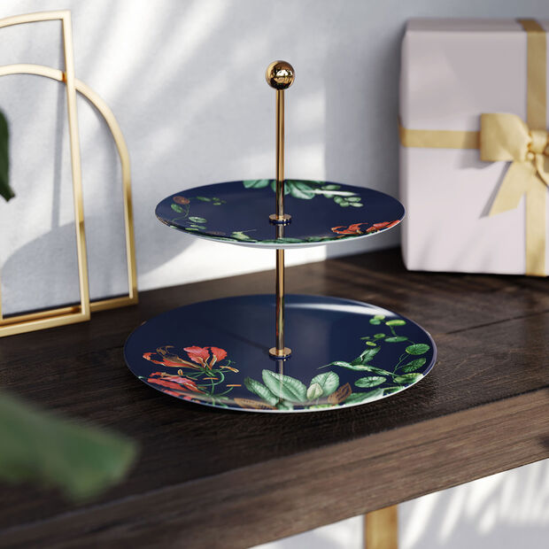 Frymëzuar nga bukuria e Avarua-s, dizajni Avarua i bën homazh udhëtimeve të navigatorit dhe eksploruesit James Cook dhe tregon historinë e zbulimit të tij me dhunti artistike. Pamja tropikale është e rrumbullakosur me linja të holla floriri që krijojnë një efekt fantastik, tredimensional që i jep jetë koleksionit. Me motive botanike dhe ngjyra të buta, stenda e ëmbëlsirave nga koleksioni Avarua krijon me mjeshtëri skenën për pjatat tuaja të preferuara, ndërsa ju lejon të ëndërroni për vende tropikale si Ishujt Kuk. Transportohu në një botë zogjsh të parajsës dhe bimëve ekzotike