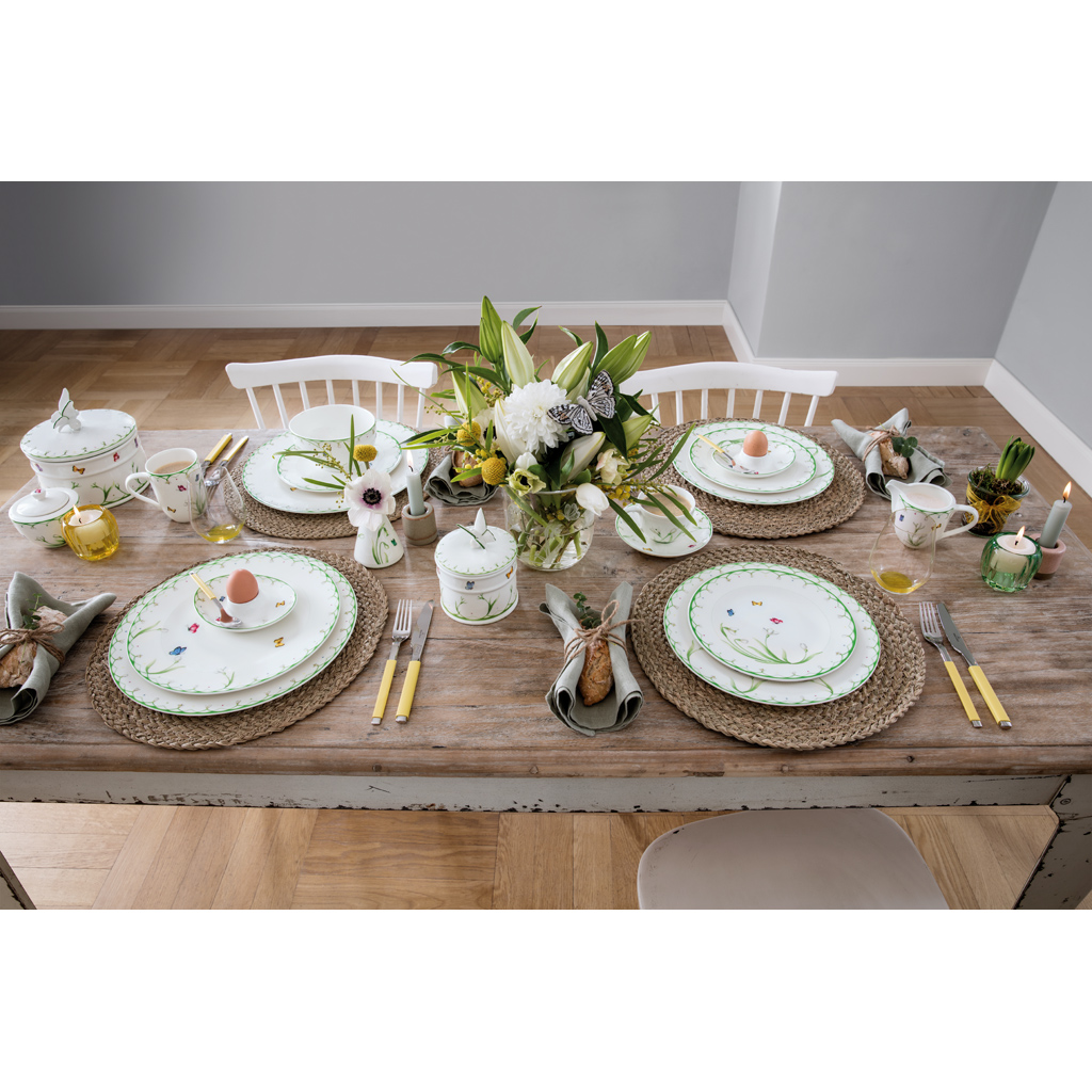 Mirëpritni pranverën me lulebore delikate dhe fluturat shumëngjyrëshe nga koleksioni Colorful Spring. Villeroy & Boch ka qenë sinonim i enëve tavoline jashtëzakonisht të bukura që nga viti 1748.Shijoni sanduiçe të shijshme, fruta ose vezë të fërguara nga pjata e mëngjesit me një motiv bore nga Pranvera Shumëngjyrëshe. Bërë nga Porcelani Premium me cilësi të lartë. Natyrisht i përshtatshëm për pjatalarëse dhe mikrovalë.Lëreni shtëpinë tuaj të lulëzojë me enë dhe aksesorë nga Villeroy & Boch.