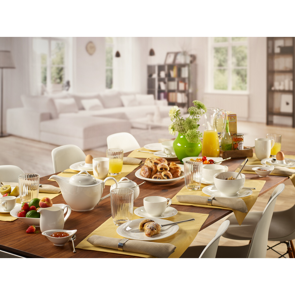 New Cottage përfaqëson një stil të ri të shtëpisë së vendit me dizajnin e tij të pastër dhe të qartë. Enët janë perfekte për një vakt të relaksuar dhe raste festive falë pamjes së saj natyrale dhe të përjetshme. Villeroy & Boch ka qenë sinonim i enëve të tavolinës me cilësi më të lartë që nga viti 1748. Kroasanët e ngrohtë ose fruta të freskëta: mëngjesi shijon edhe më shumë kur shërbehet në këtë pjatë mëngjesi. Bërë nga Porcelani Premium me cilësi të lartë. Natyrisht i përshtatshëm për pjatalarëse dhe mikrovalë. Trajtoni të dashurit tuaj me enë tavoline elegant nga Villeroy & Boch herët në mëngjes.
