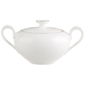 Villeroy & Boch ofron elegancën më të madhe për çdo tavolinë ngrënieje. Koleksioni ynë i përjetshëm Anmut Platinum karakterizohet nga një dekor brilant i bardhë dhe platini fine. Cilësi nga Villeroy & Boch që nga viti 1748. Ky tas sheqeri shumë elegant dhe i bukur pa kohë është shtesa perfekte për çajin tuaj ose kafen e pasdites. Shtoni prekjen e fundit në shërbimin tuaj për raste të veçanta.