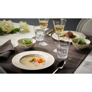 Koleksioni Grand Royal nga Villeroy & Boch përfshin syze me cilësi premium dhe të punuar me dorë me dashuri për njohësit që kërkojnë dizajne tërheqëse dhe ekskluzive. Cilësi nga Villeroy & Boch që nga viti 1748. Këto tumbale klasike vijnë në një veshje të stilit të lartë: prerja e pazakontë gjeometrike i shton një lulëzim dekorativ tabelës suaj festive. Vendoseni tryezën tuaj me gota cilësore.